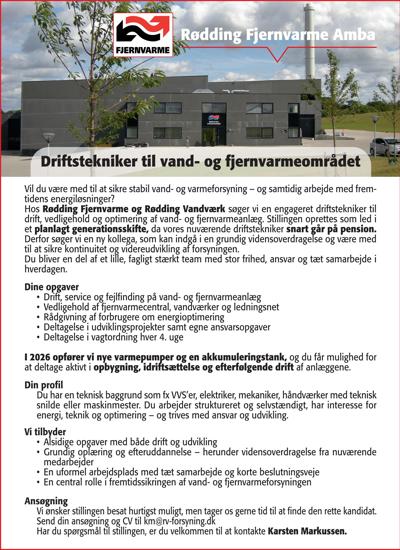 Vi søger en driftstekniker til vand- og fjernvarmeområdet
